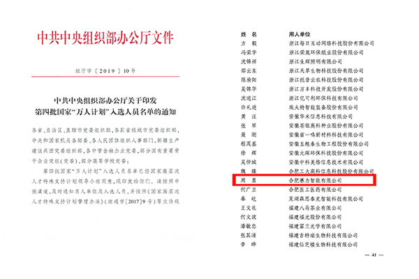 中(zhong)共中(zhong)央組織(zhi)部(bu)辦公廳下發《關于印發第四批國家“萬人計劃”入選人員名單的通知》,周勇董事長相繼入選科技部科技創新創業人才后、國家“萬人計劃”科技創業領軍人才、2019年度中國制造工業互聯網領軍人物、深圳工商聯(總商會)常委、深商風云人物、中國無人機行業十大領軍人物等。