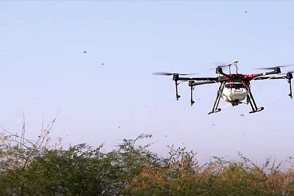 在連日來的飛行作業過程中,賽為智能賽鷹植保無人機通過裝載滅蝗藥劑,從低空向沙漠蝗蟲進行噴灑,大量消滅蝗蟲。相比人工噴灑和載人飛機噴灑,植保無人機作業更加靈活便捷,效率更高,成本更低,噴殺效果更為顯著。同時,賽鷹無人機還可以根據地形進行靈活調整和改進,成為當地蝗蟲防控工作的有力幫手。