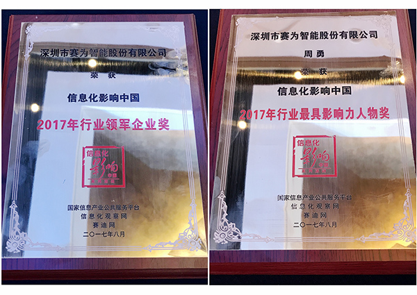 在頒獎盛典上,深圳市賽為智能股份有限公司一舉摘得(de)“信息化影響中國·2017年行業領軍企業大獎”,以及“智慧城市領域最佳(jia)解決方(fang)案(an)獎”兩項大獎,賽為智能董事長周勇先生獲得“信息化影響中國·2017年行業最(zui)具影響力人(ren)物獎”榮譽(yu)稱號(hao)。