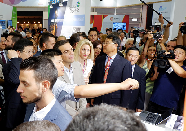 開幕式結束后,在中國駐希臘大使鄒肖力、中國貿促會副會長張偉等陪同下,希臘總理齊普拉斯一行來到中國館,對賽為智能展區進行了參觀指導。在賽為智能展區,齊普拉斯總理認真聽取了公司工作人員的介紹,詢問了相關產品的特點和優勢,對賽為智能推出的無人機、軌道交通產品等研發創新成果表達了高度贊賞。