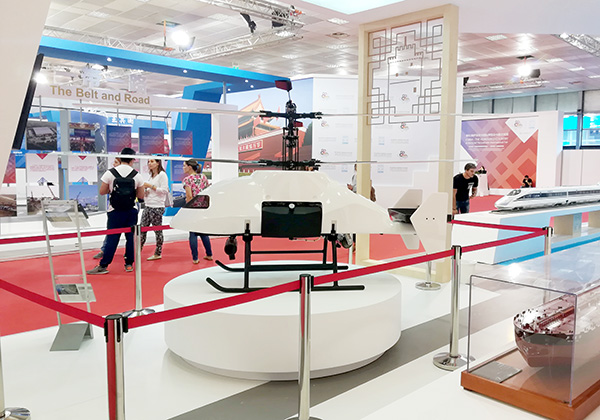 現場(chang)展(zhan)出的國內首款系留旋(xuan)翼無人機賽鷹4000T